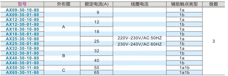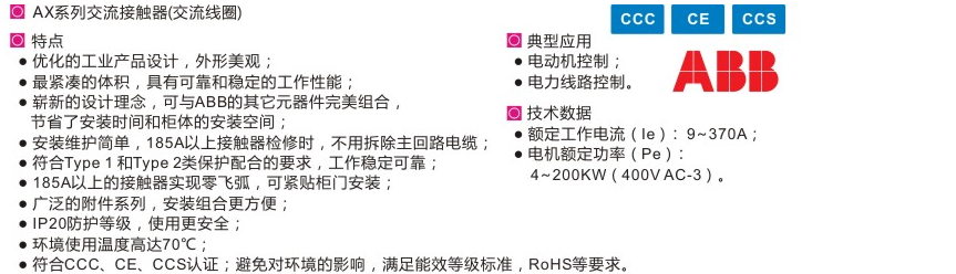 ABB AX系列交流接触器(交流线圈)