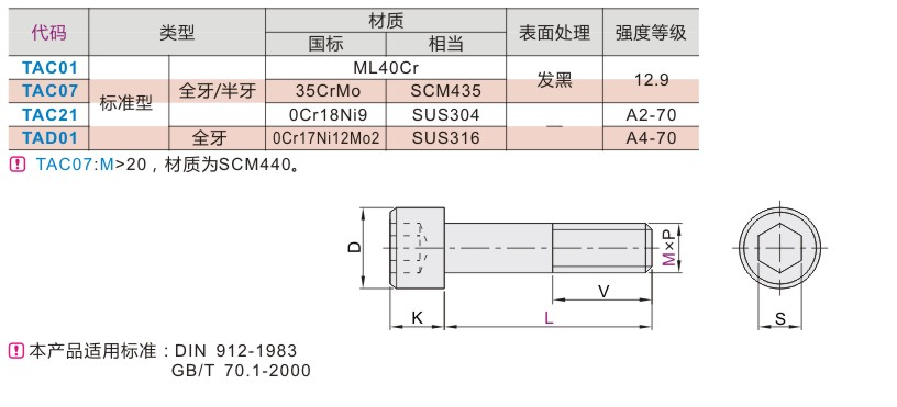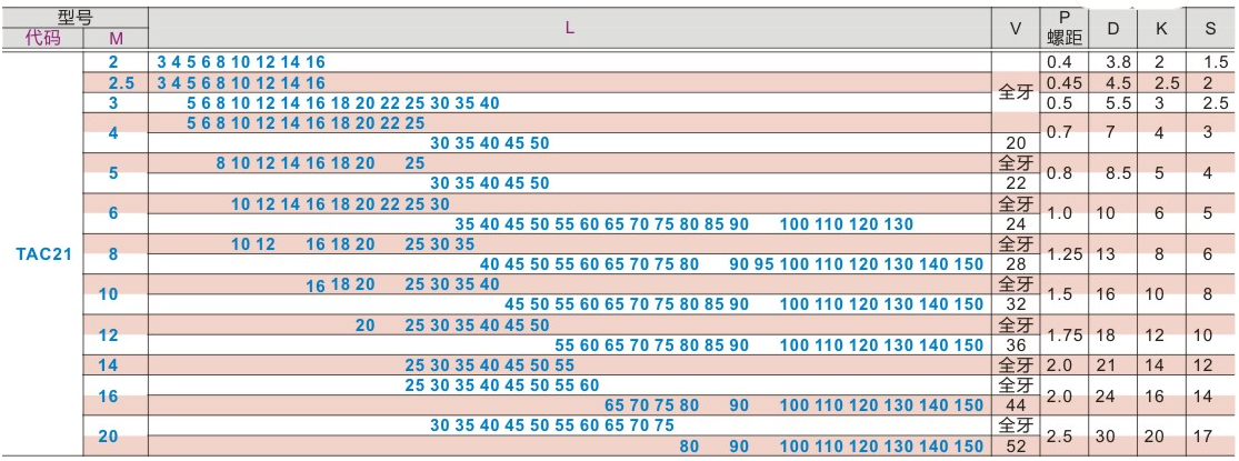 内六角圆柱头螺钉 全牙/半牙 标准型