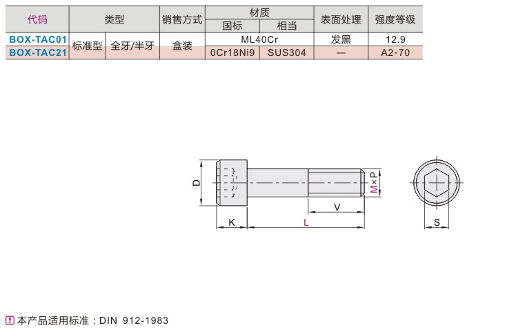 内六角圆柱头螺钉(盒装) 全牙/半牙 标准型